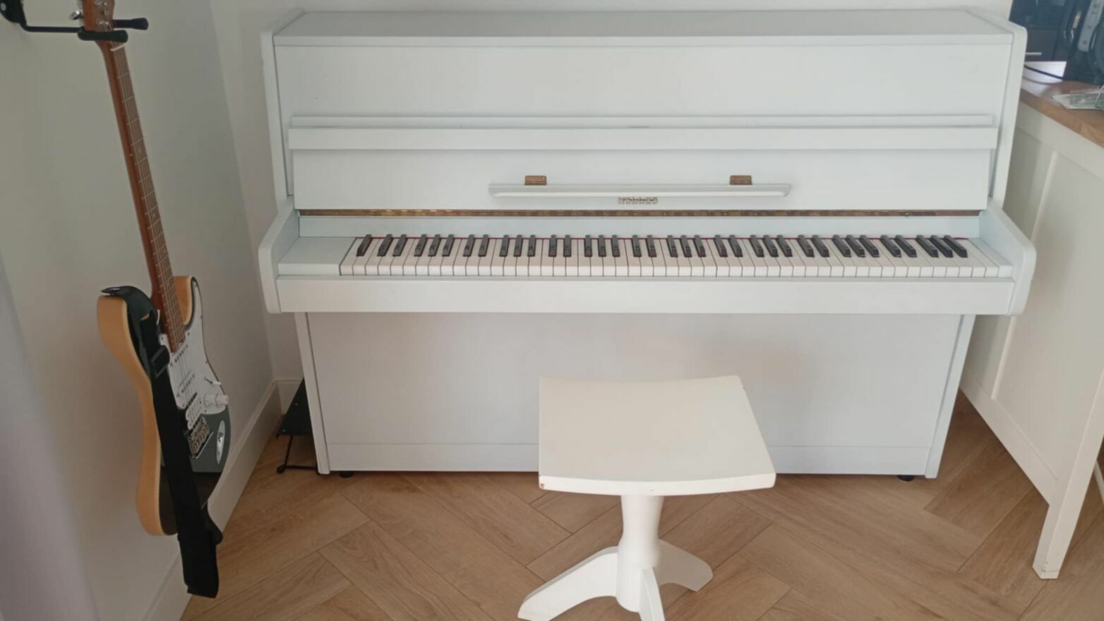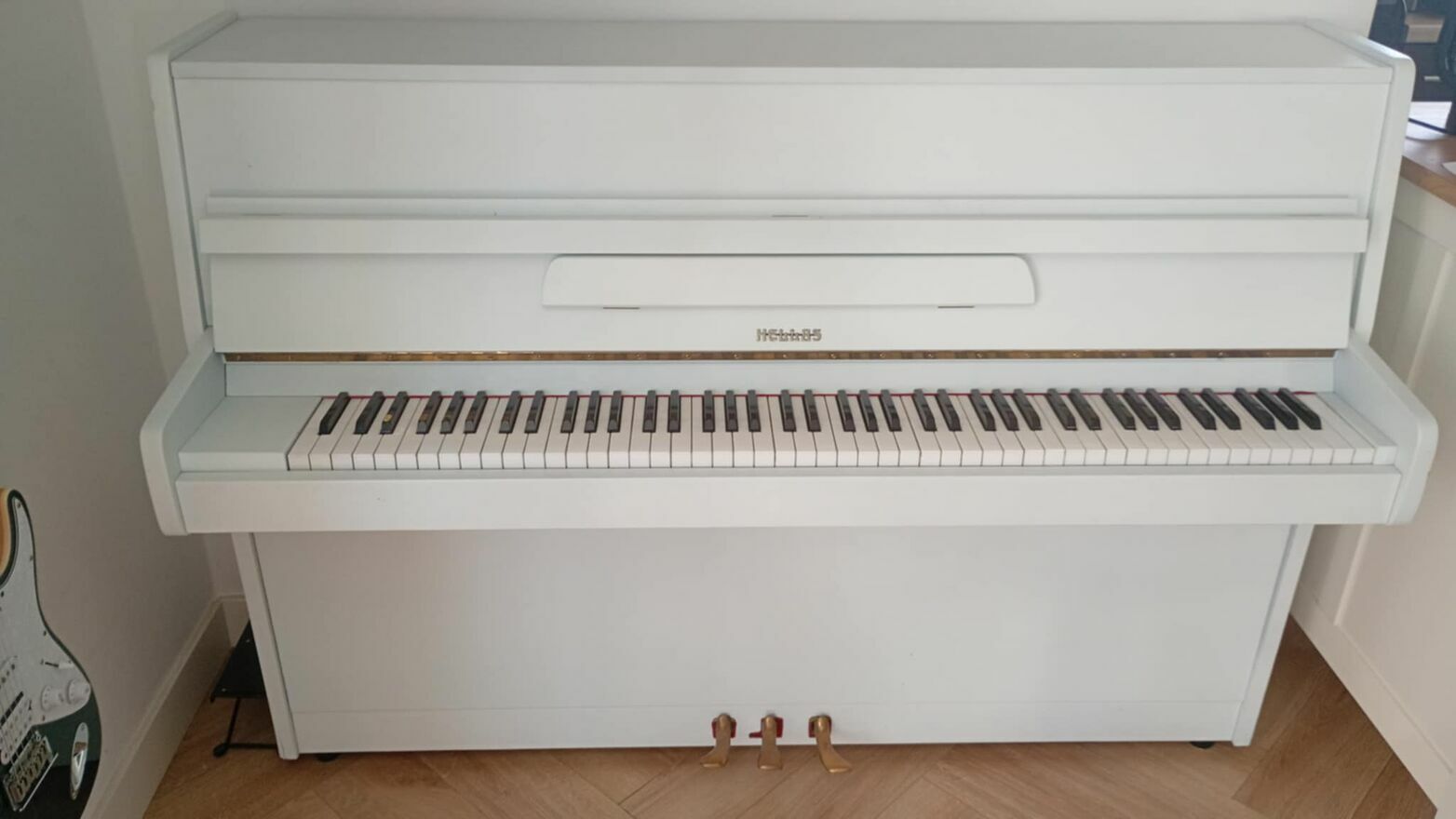 Białe pianino Hellas nie strojone od 2 lat.Ma lekkie odpryski farby na 2 rogach.